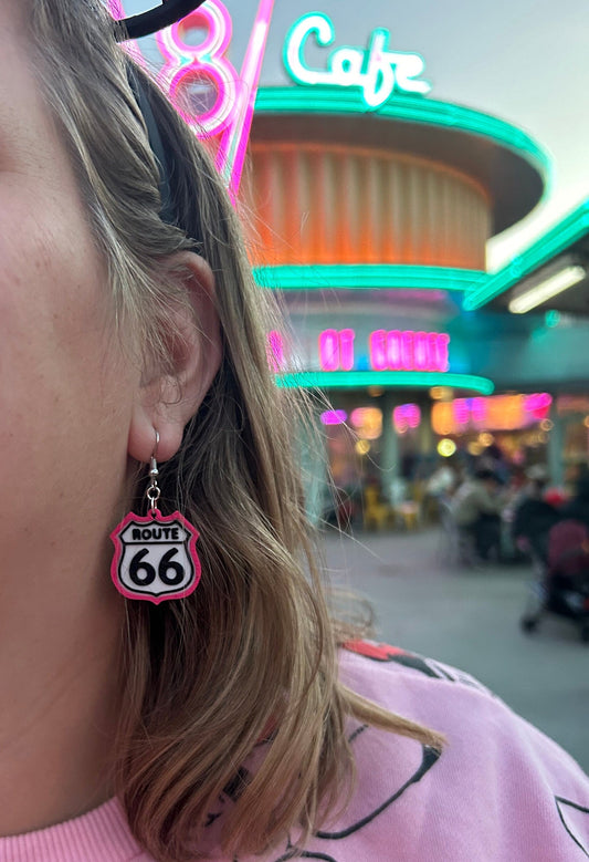 Pink or Red V8 Cafe/Route 66 Earrings - 3D printed