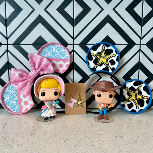 Sheriff and Little Bo Peep Earrings - 3D printed